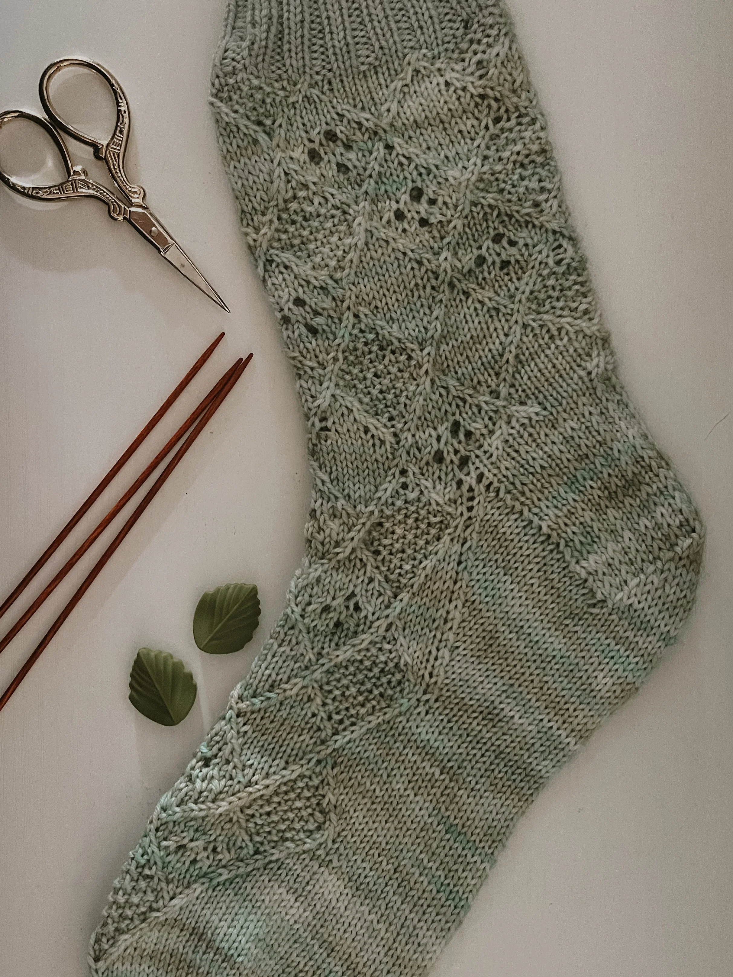 if you tend to knit lace tight, i recommend knitting the lace portion of the leg on one needle size bigger.
