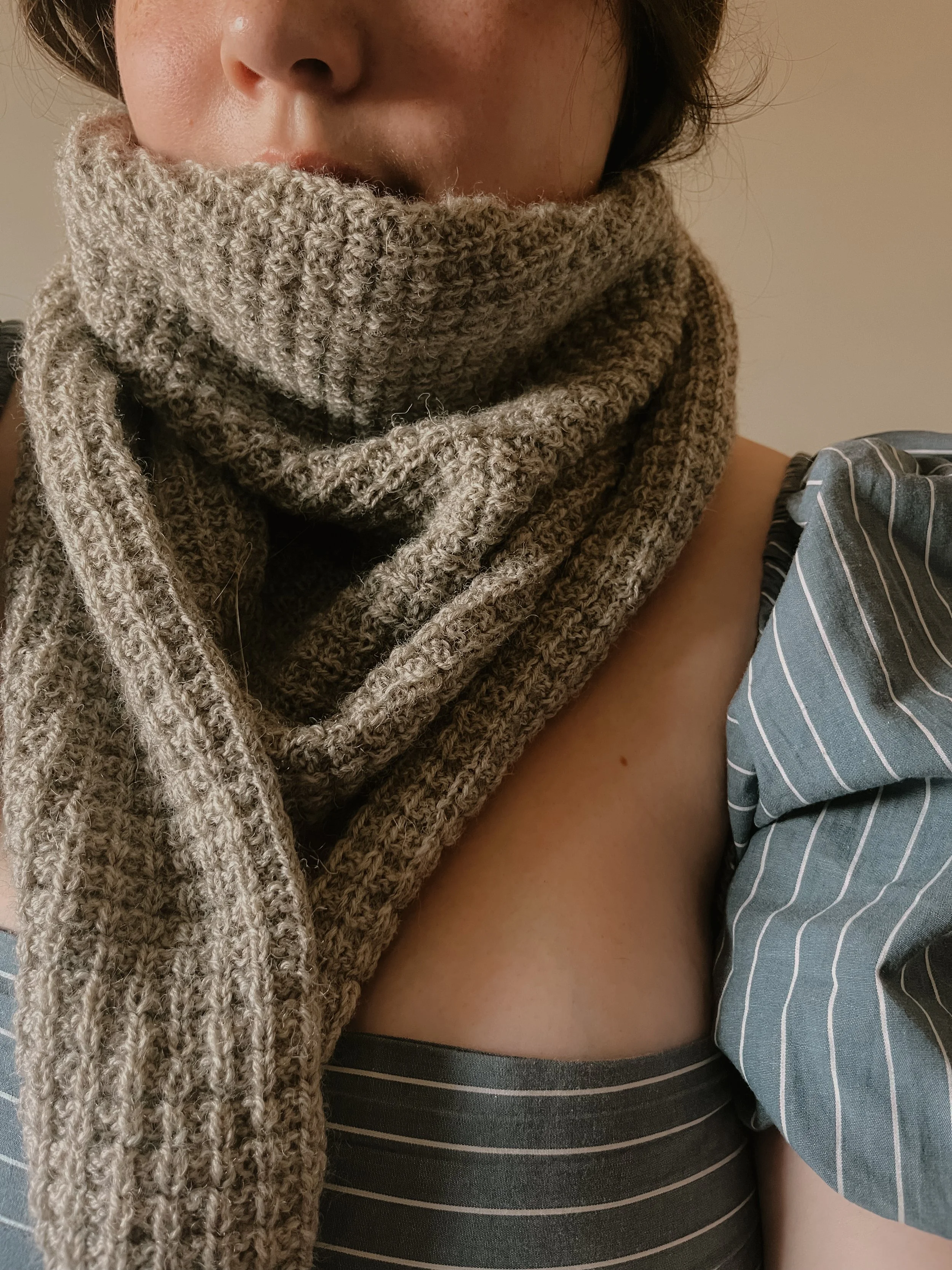 this scarf/shawl is designed to use scrap/leftover yarn. it can be customized to however much yarn you have! It is written for three different weights: fingering weight, DK weight, and aran weight.